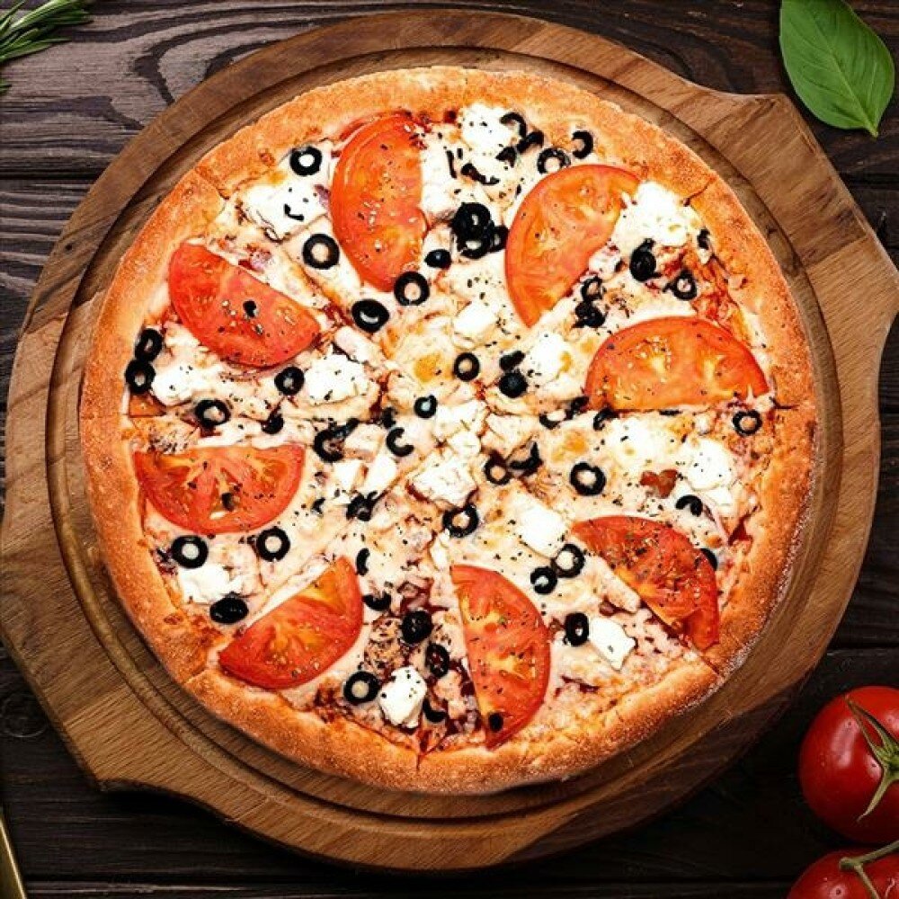 моцарелле, маслины , томаты, перец, фета сыр, томатный соус 35 см