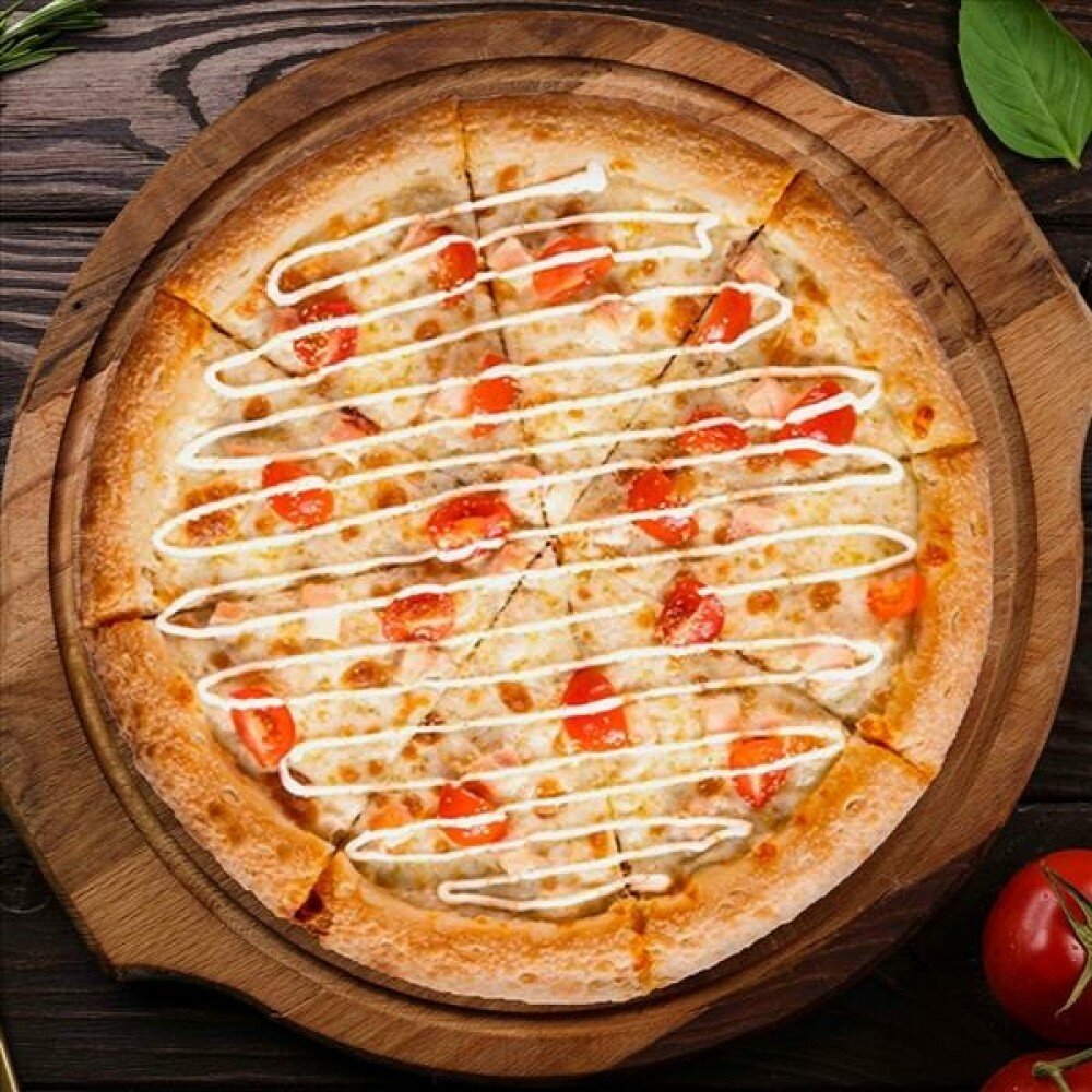 Нежное куриное филе обжаренное в специях, ветчина, томаты черри, моцарелла, ранч соус, орегано, белый соус