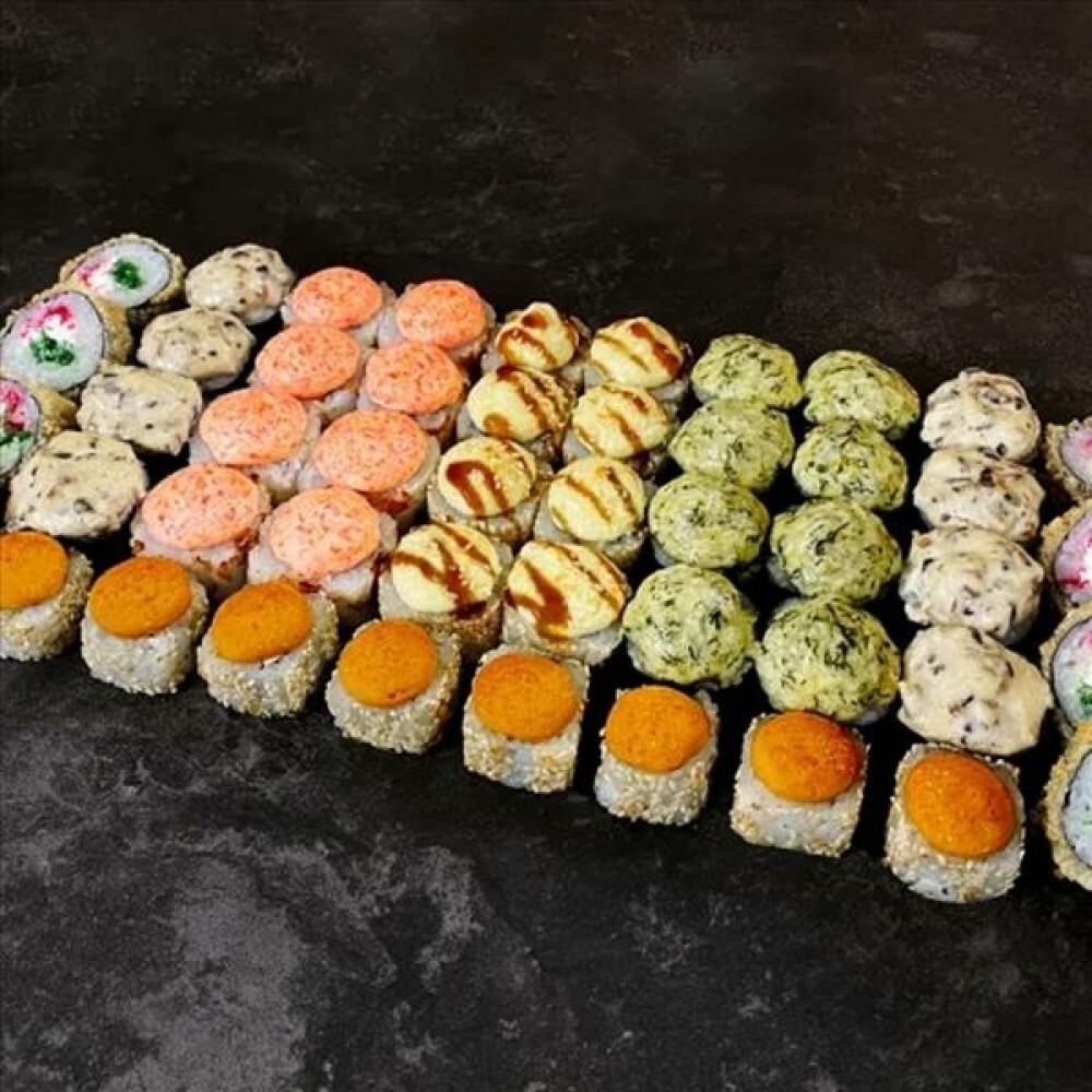 ( бесплатный набор топпингов: 200 мл соевого соуса, 30 гр. имбиря, 10 гр. васаби, палочки)