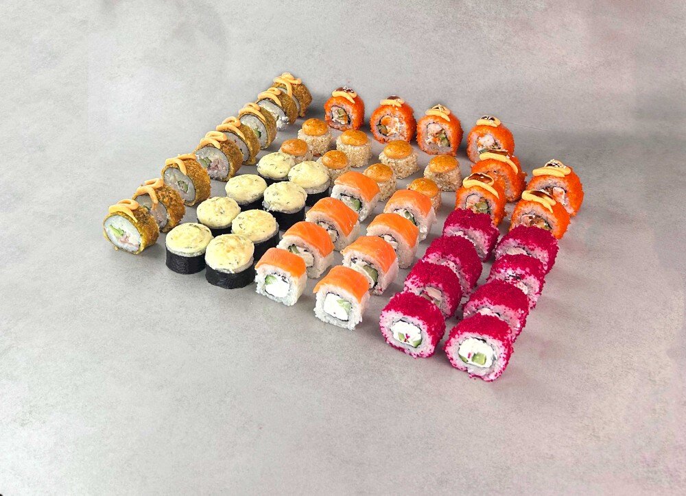 ( Бесплатный набор: 100 мл соевого соуса, 30 гр. имбиря, 5 гр. васаби, палочки)
