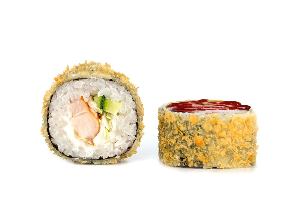 Обжаренное куриное филе, помидор , петсай, темпура, терияки, кунжут, рис, нори