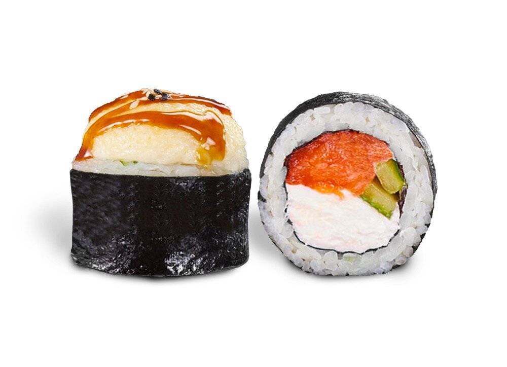 Лосось, сырный соус, унаги, огурец, сливочный сыр, рис, нори