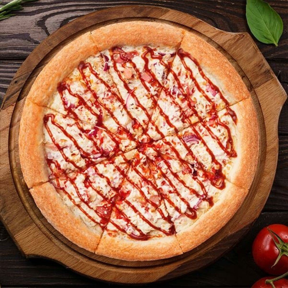 Нежная курочка, моцарелла, томатный соус, лук красный , соус барбекю