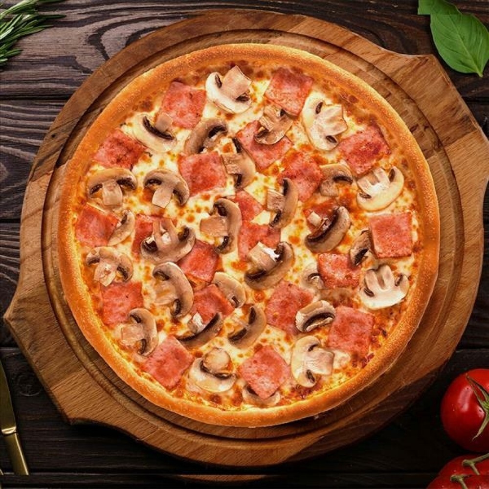 Ветчина , шампиньоны, моцарелла, белый соус 35 см