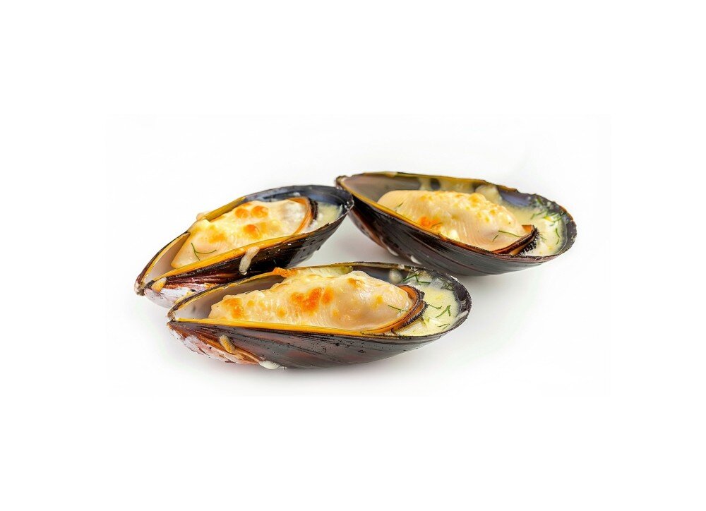 Мидии под сырно-чесночным соусом