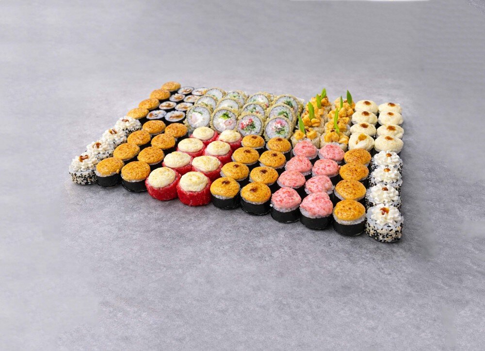 Ахуна : ролл с мидиями, сыром, томаго, терияки
