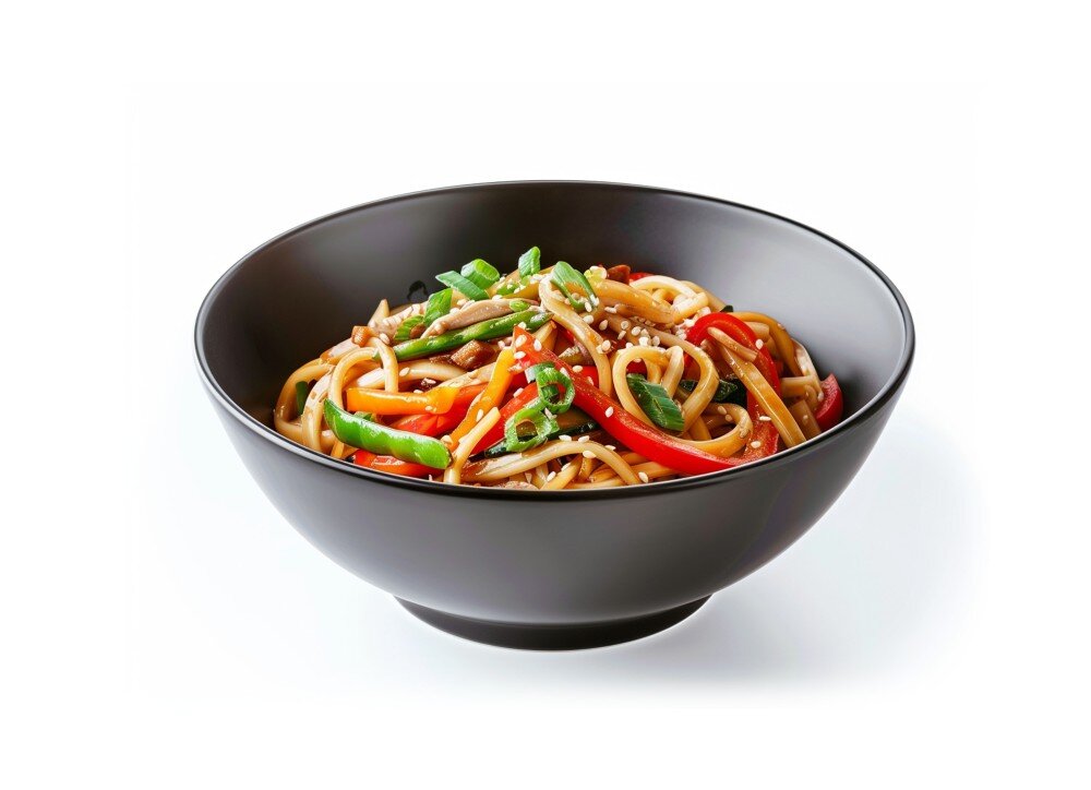 Соус на выбор: Терияки/Кисло-сладкий/ Сливочный. Состав : Лапша, соус на выбор, фасоль, перец болгарский, шампиньоны, морковь, петсай,соевый соус, лук зеленый, кунжут, 260гр