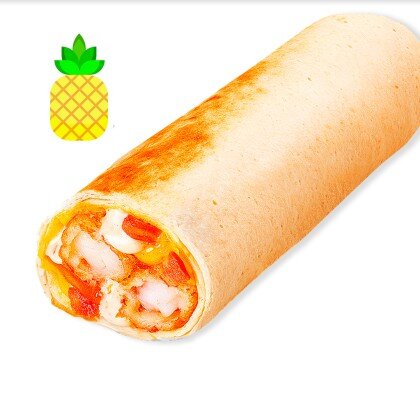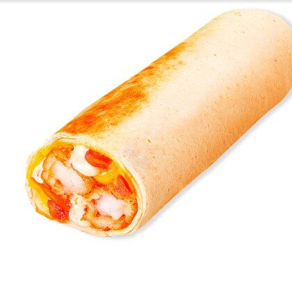 Брутальный роллфер с копчеными баварскими колбасками, маринованным огурчиком, соусом BBQ, томатом и моцареллов в тонкой пшеничной лепешке