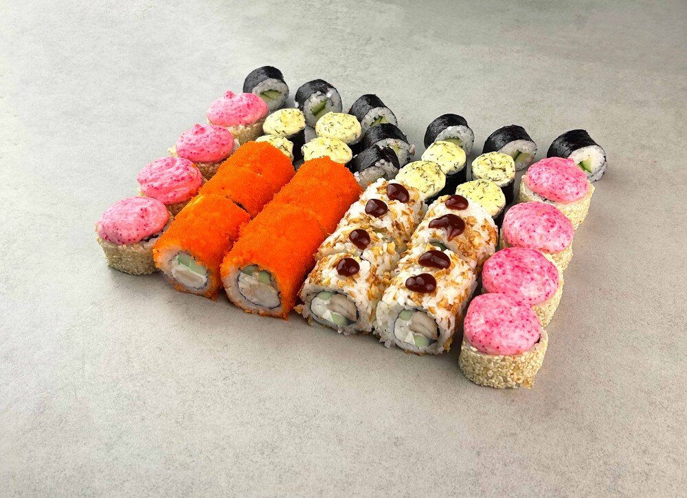 2.Чикен фри : лук фри , цыпленок обжаренный в соусе сладкий чили, рис, огурец, соус BB3.Запеченый с крабом : рис, лава саус для запекания, кунжут, майонез, огурец, имитация краба, икра масаго, сыр моцарелла,