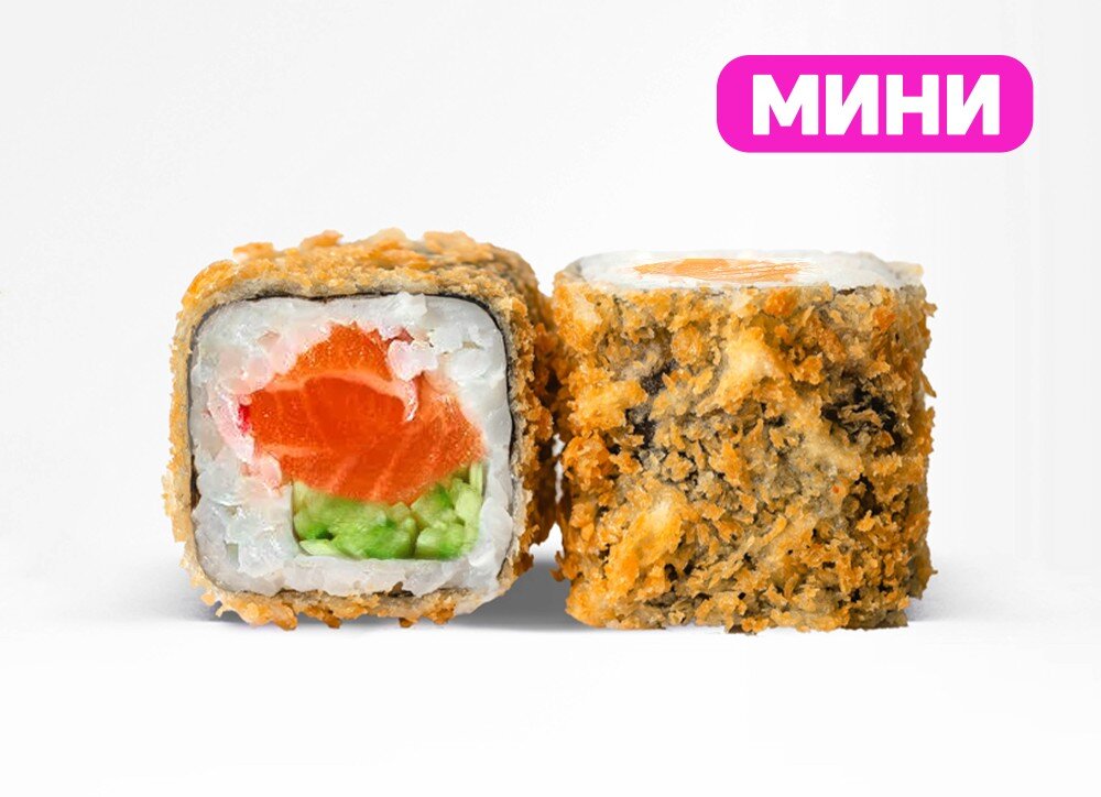 Жареный мини ролл с лососем , огурчиком и соусом терияки