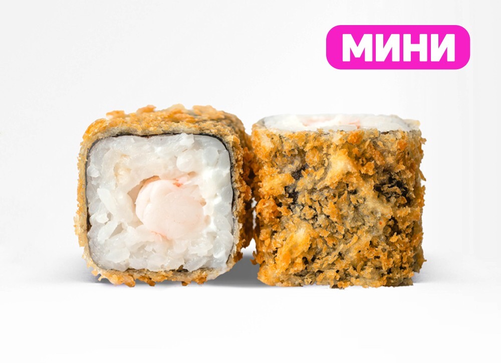 Мини ролл с тигровыми креветками, огурцом, рисом обжаренный в сухарях панко