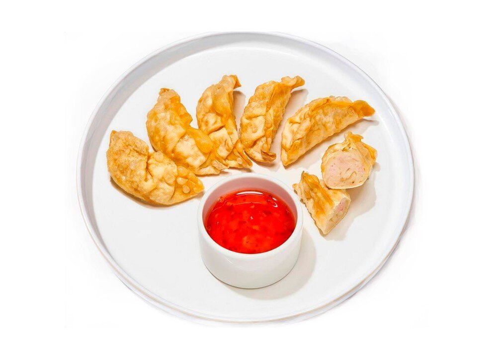 1. Фарш из креветки, соль, лук,майонез, соус соевый , мука, масло, яйцо,перец белый молотый ( изг в соотв. с регламентом ТУ 10 20 25-003-45217493-2020) 2. Соус чили сладкий